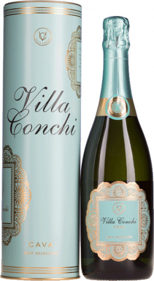 Villa Conchi Brut Selección (in metalen geschenkkoker) is goud met briljant groene tinten. Elegant met fijne bubbels. De blend is gemaakt van 30% Xarel-lo, 30% Parellada, 30% Macabeo en 10% Chardonnay. In de neus een goede intensiteit met fruit aroma’s en nuances van toast. De smaak is heerlijk fris, rijk, aangenaam en rond met een lange finish. Deze mousserende wijn doet niet onder voor een goede Champagne!